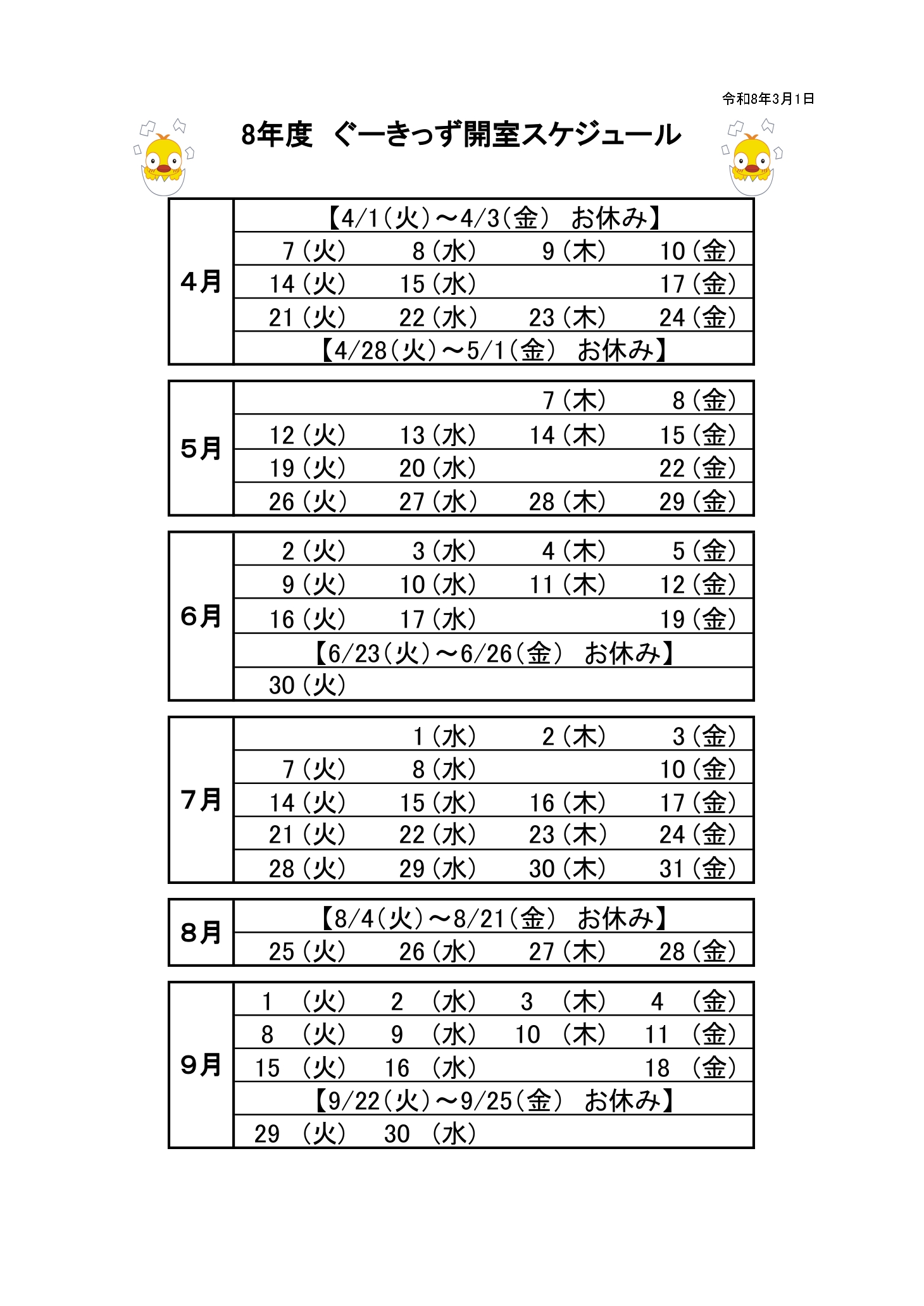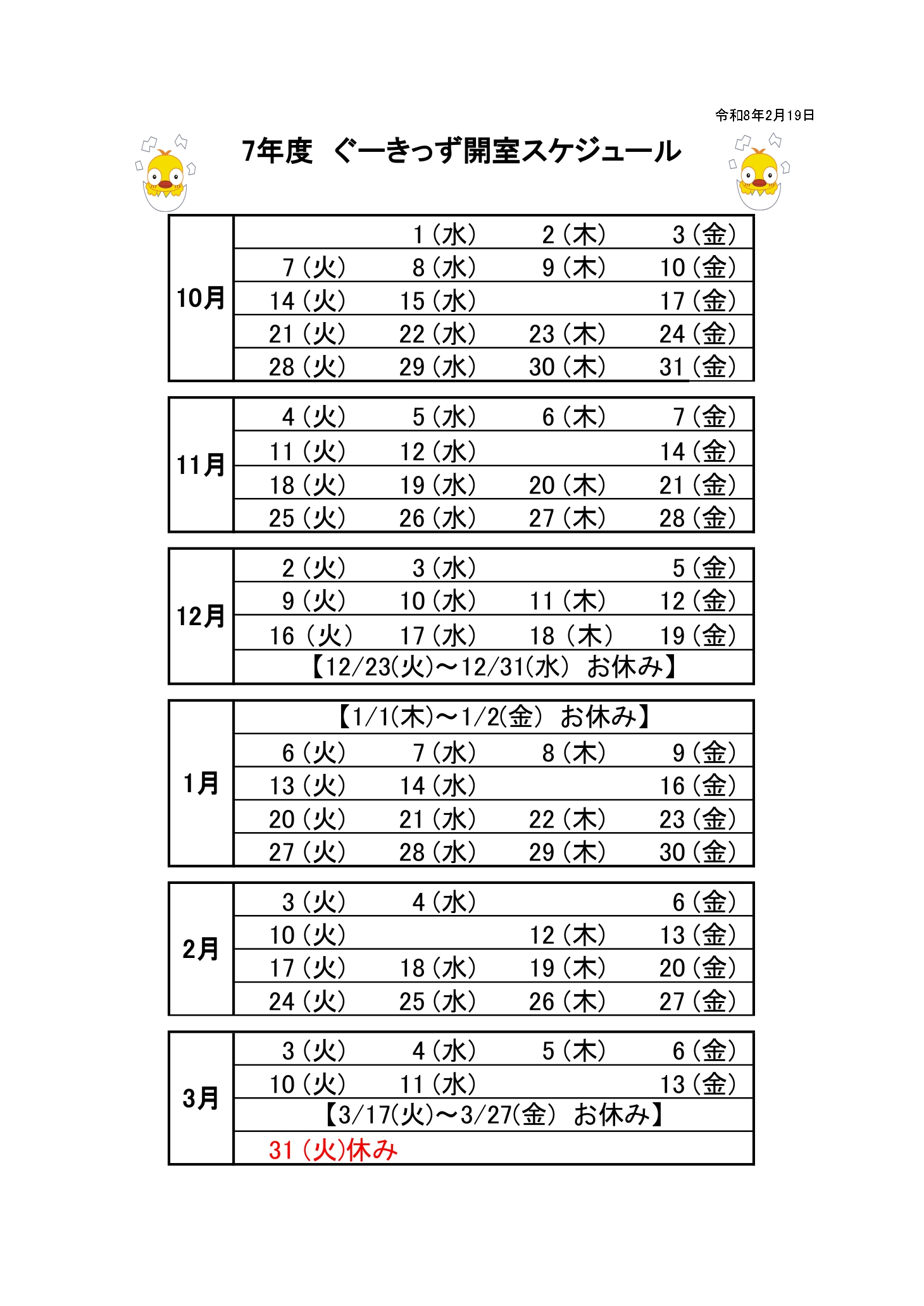令和7年度後期利用予定