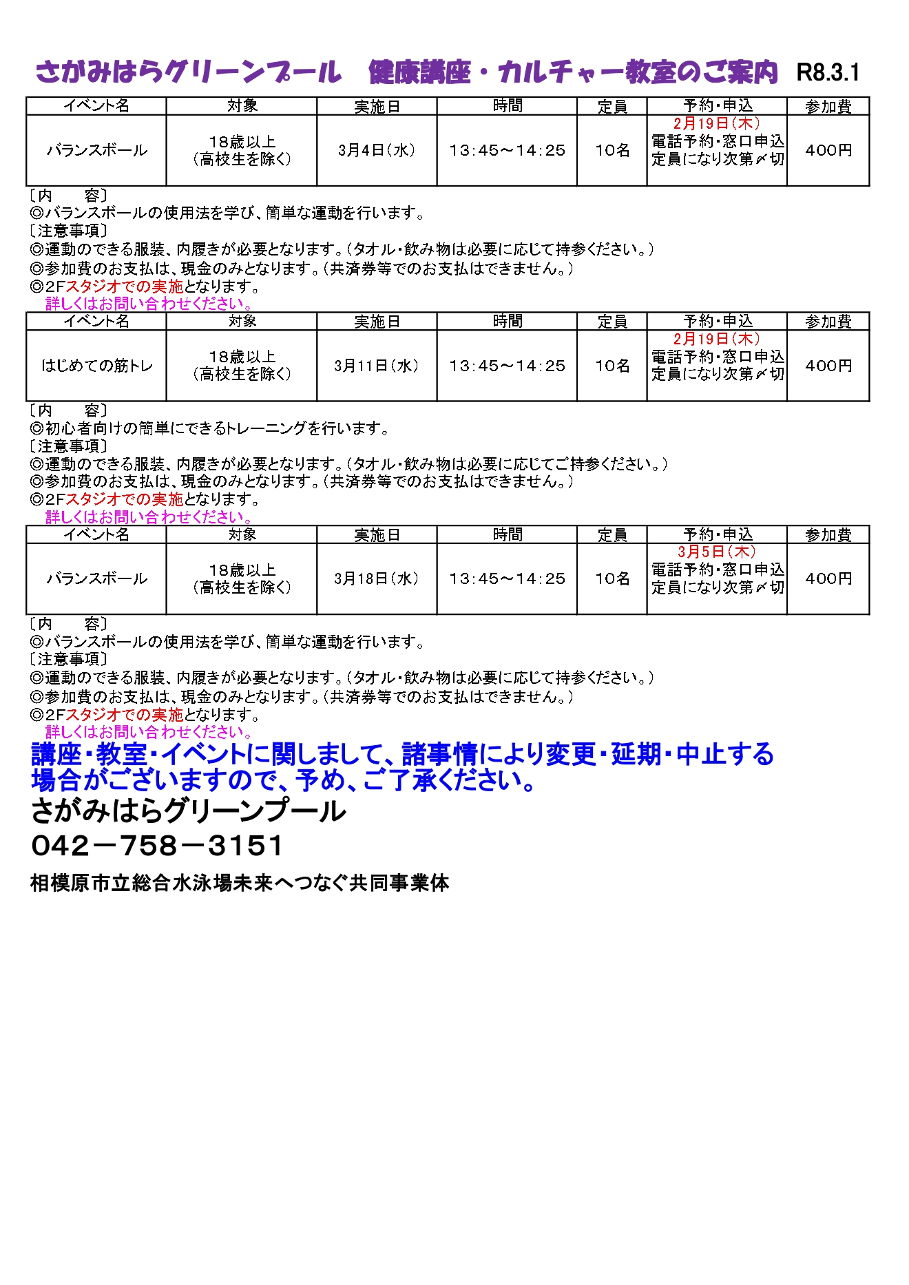 ご不明な点は当施設までお問い合わせください。TEL:042-758-3151